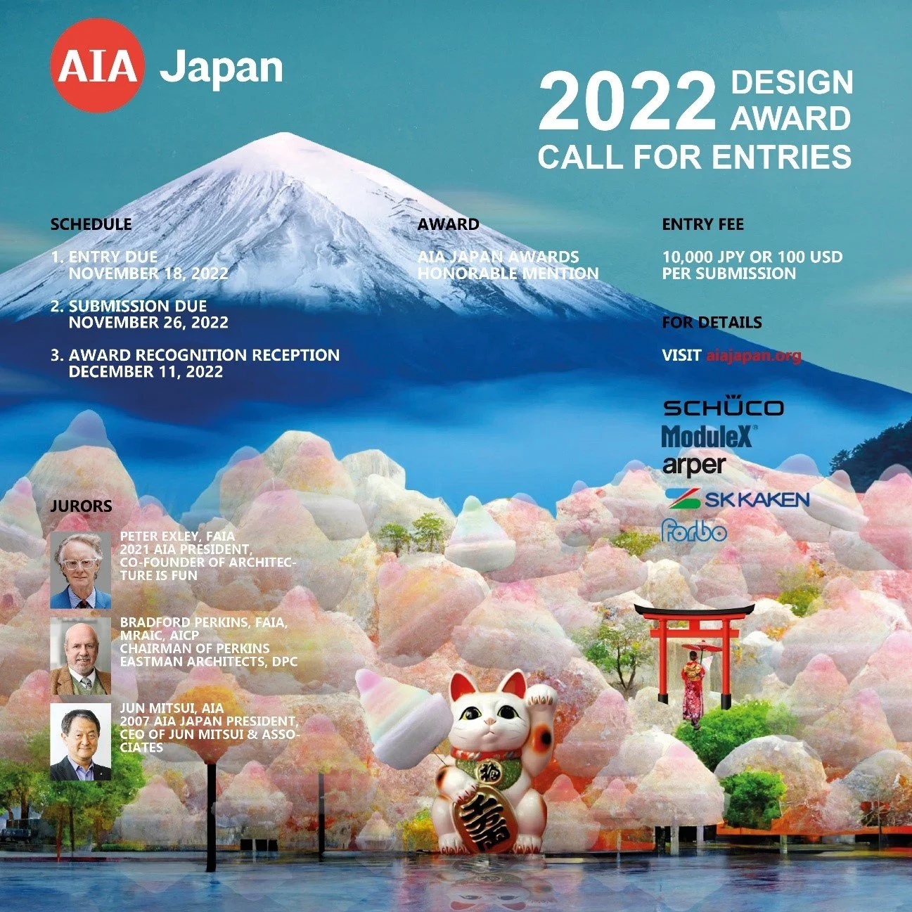AIA Japan Chapter invites AIA members assigned to Japan Chapter or AIA members with the Japan project in good standing including Architect, Associate AIA, and International Associate AIA to submit their projects for the 2022 AIA Japan Design Award Program.