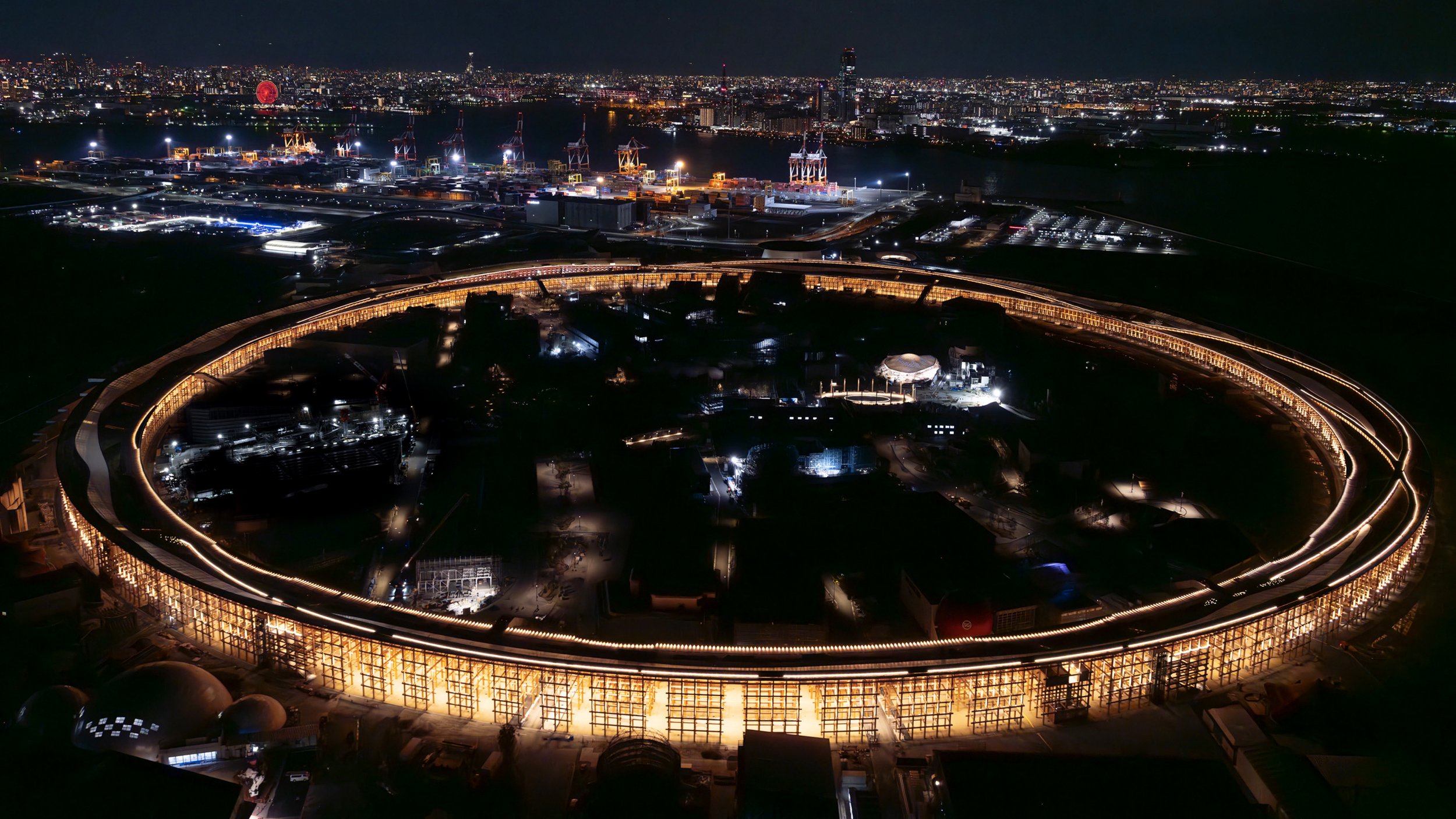 Top: Ensō (円相), Middle: Enso Concept of the Osaka Expo, Bottom: Osaka Expo Night Aerial Photograph — Credit © Expo 2025